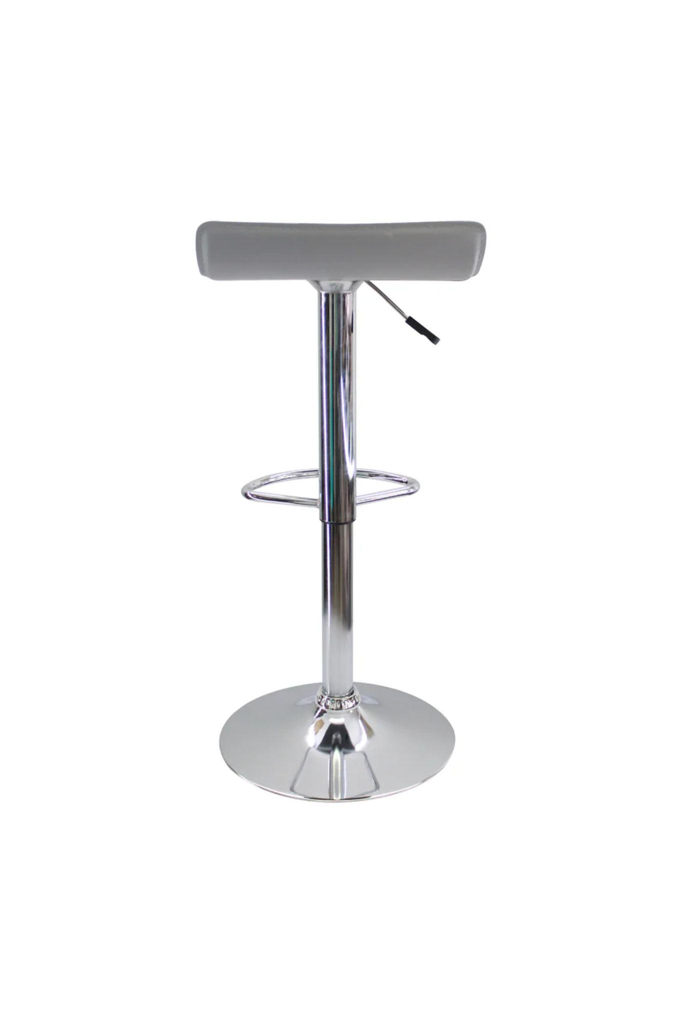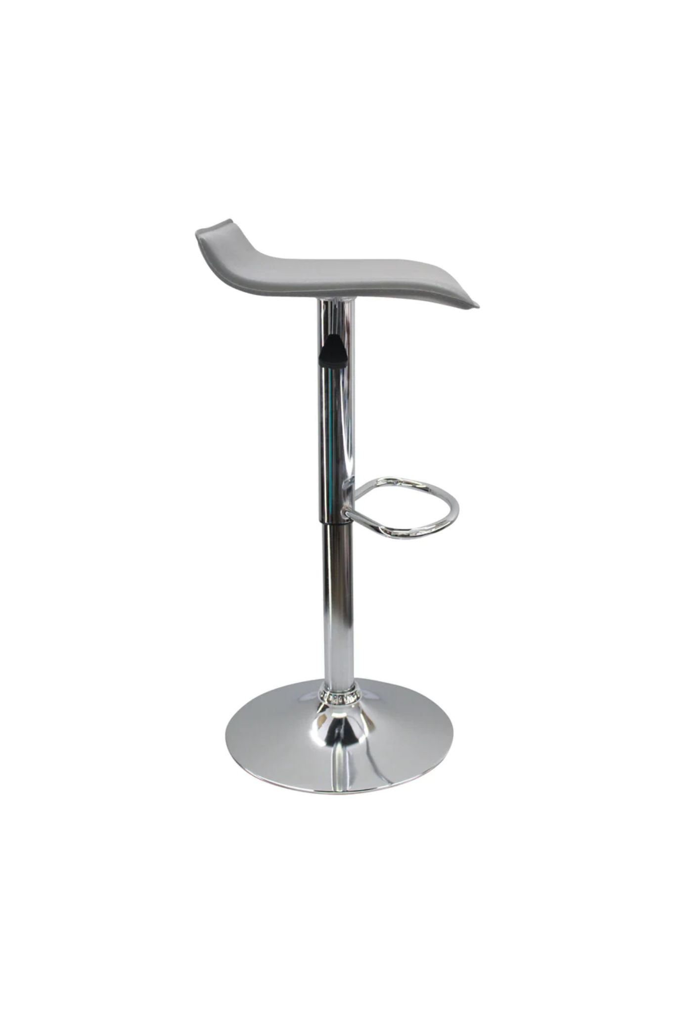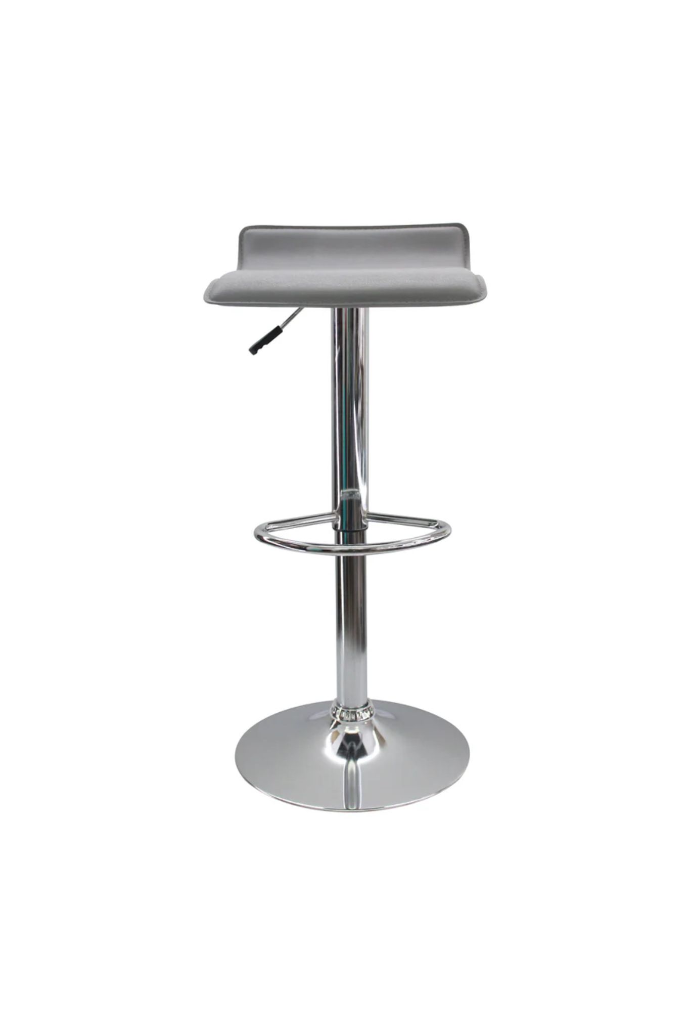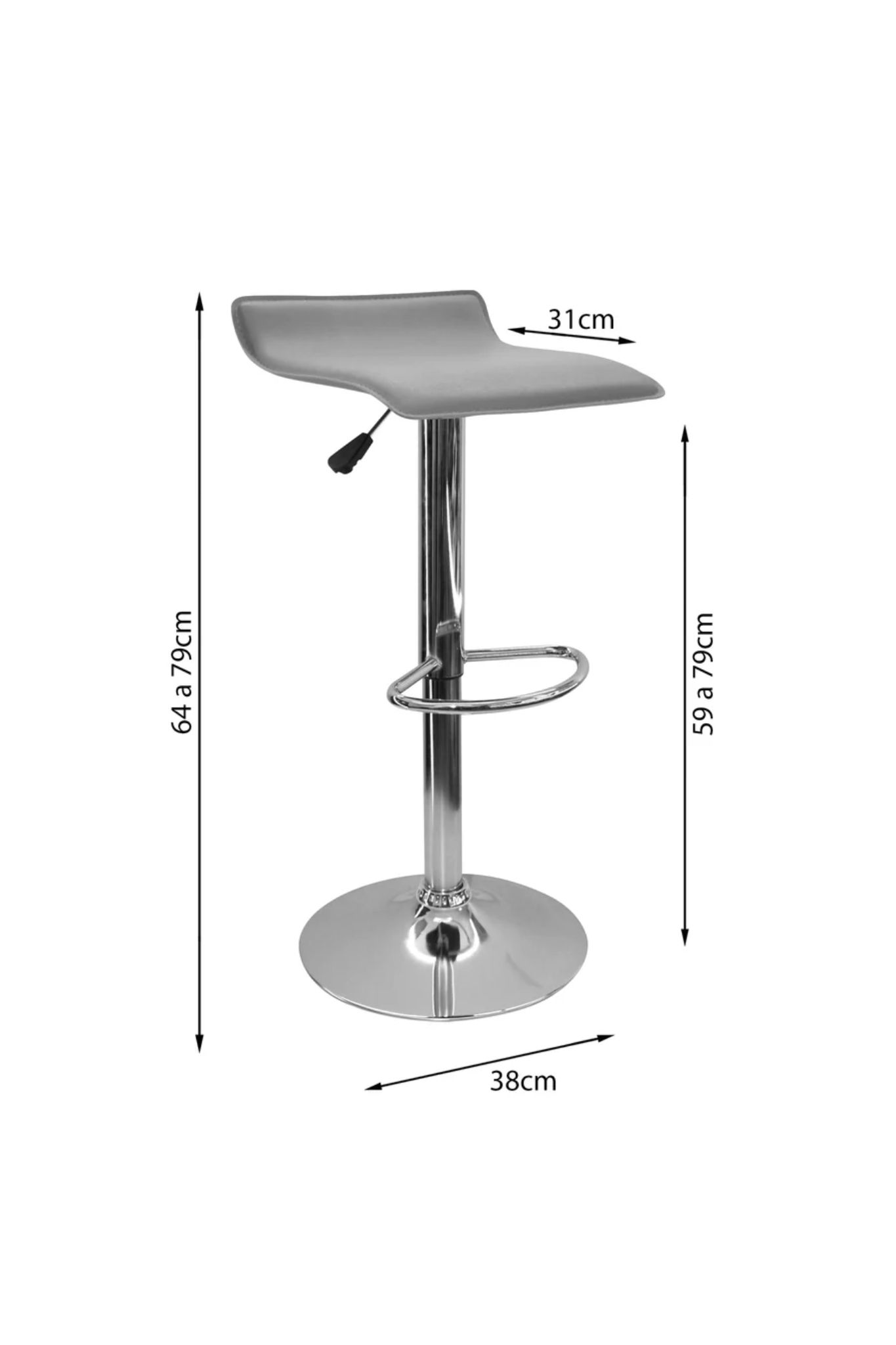 La estructura cuenta con una base elaborada en metal cromado, equipada con un sistema neumático que permite regular la altura de forma fluida. Esto la hace ideal tanto para barras de cocina como para mesas de bar de distintas dimensiones. Incluye un apoyapiés integrado en la base para mayor confort, soporta hasta 110 kilos y tiene un año de garantía por defectos de fábrica.