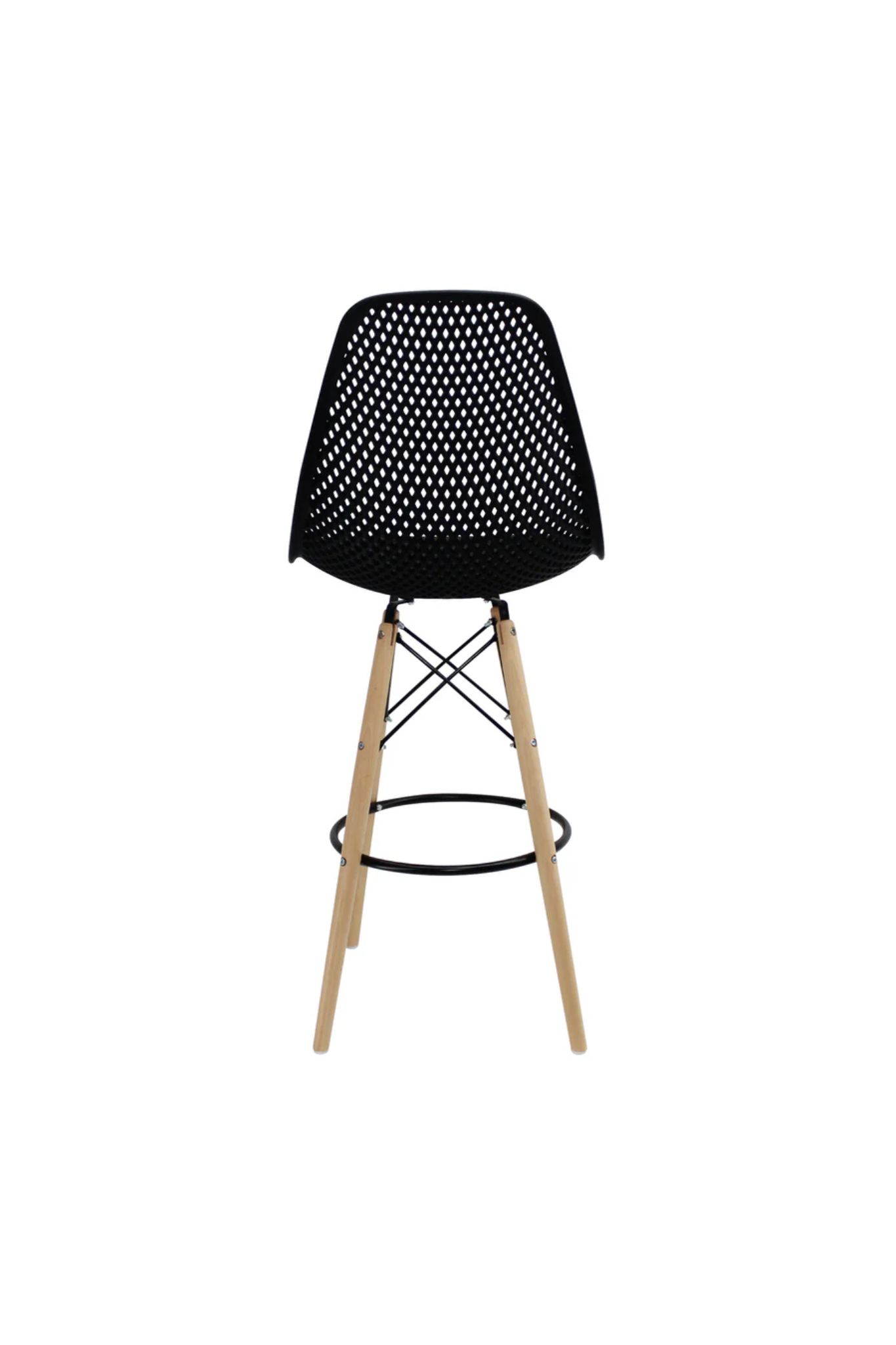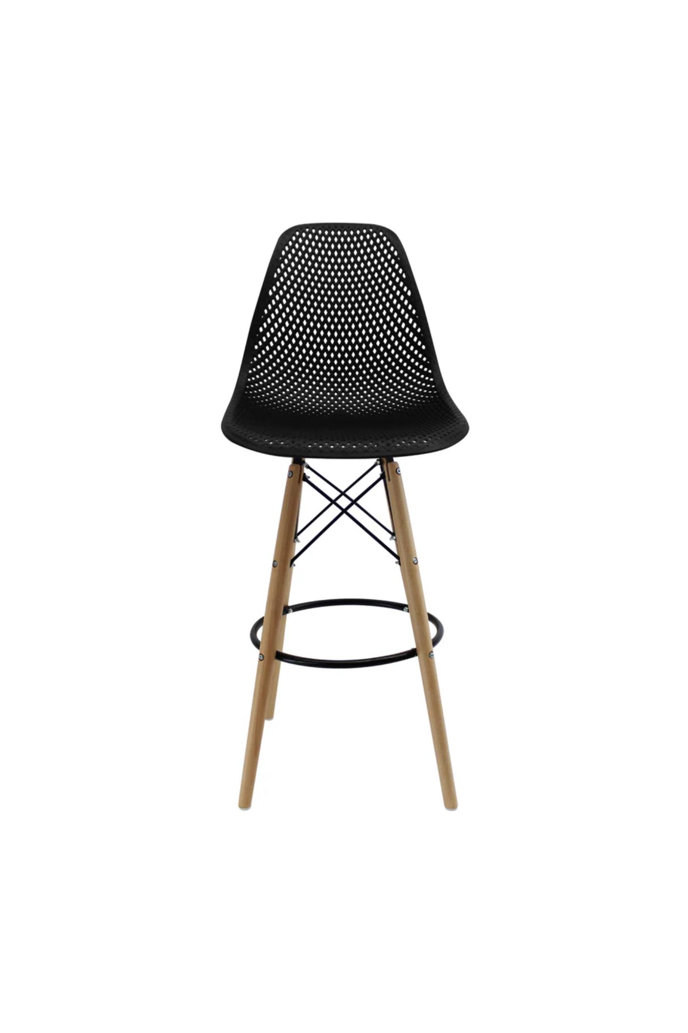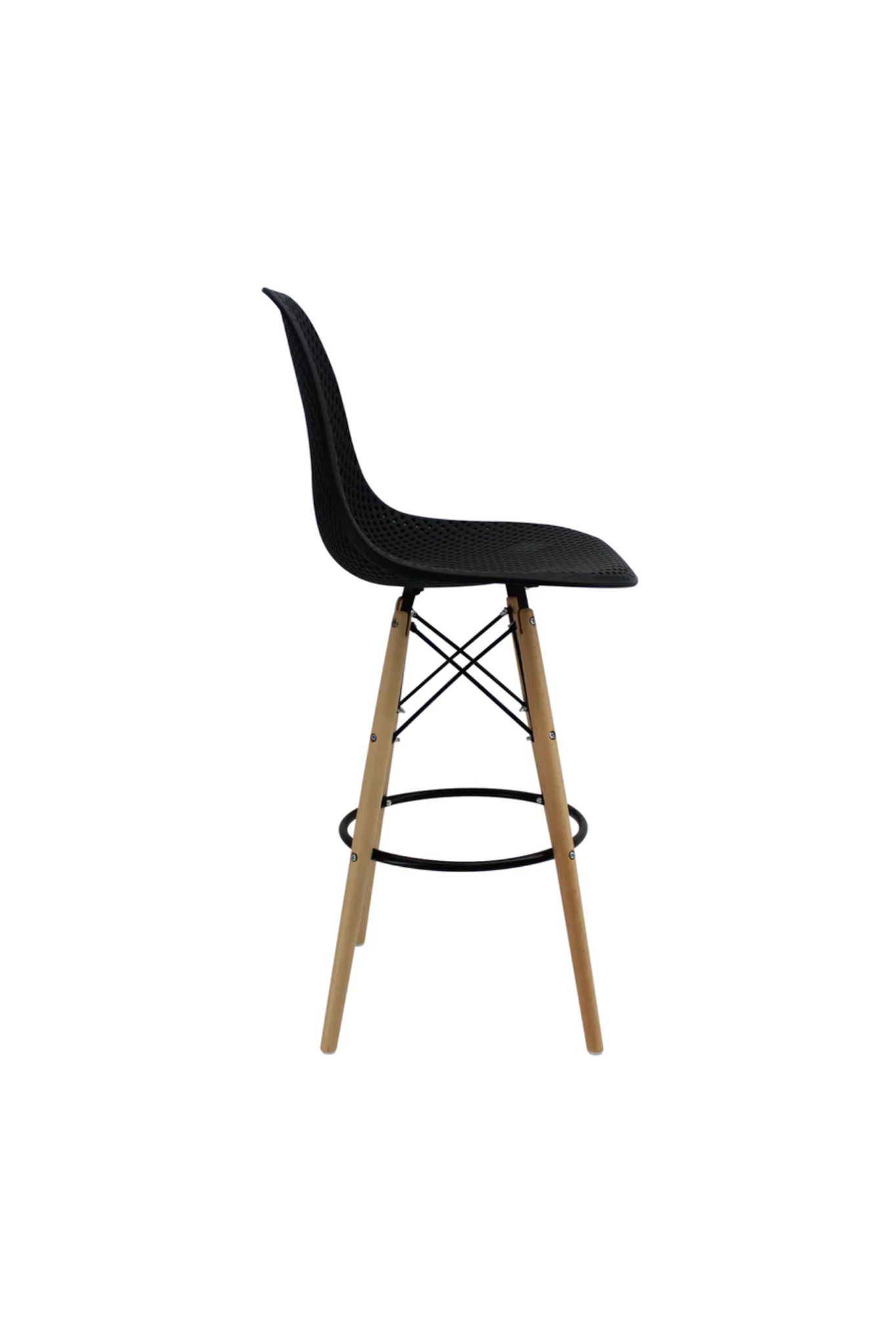 Esta silla está fabricada con un asiento y espaldar de polipropileno inyectado de alta resistencia, diseñado para soportar el uso diario manteniendo su frescura gracias a sus calados. Su estructura de bar está diseñada para ofrecer una posición de sentado elevada y cómoda.