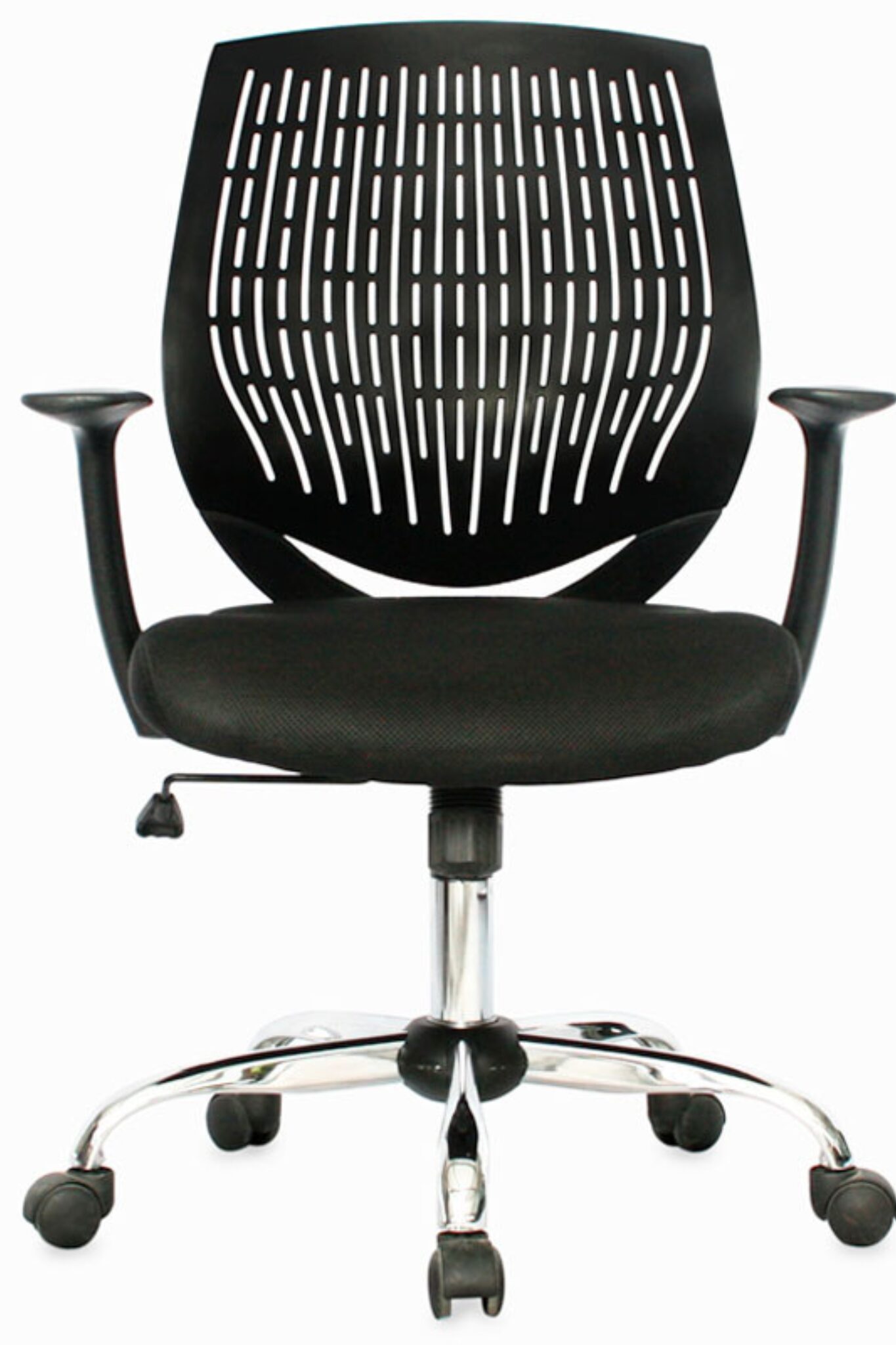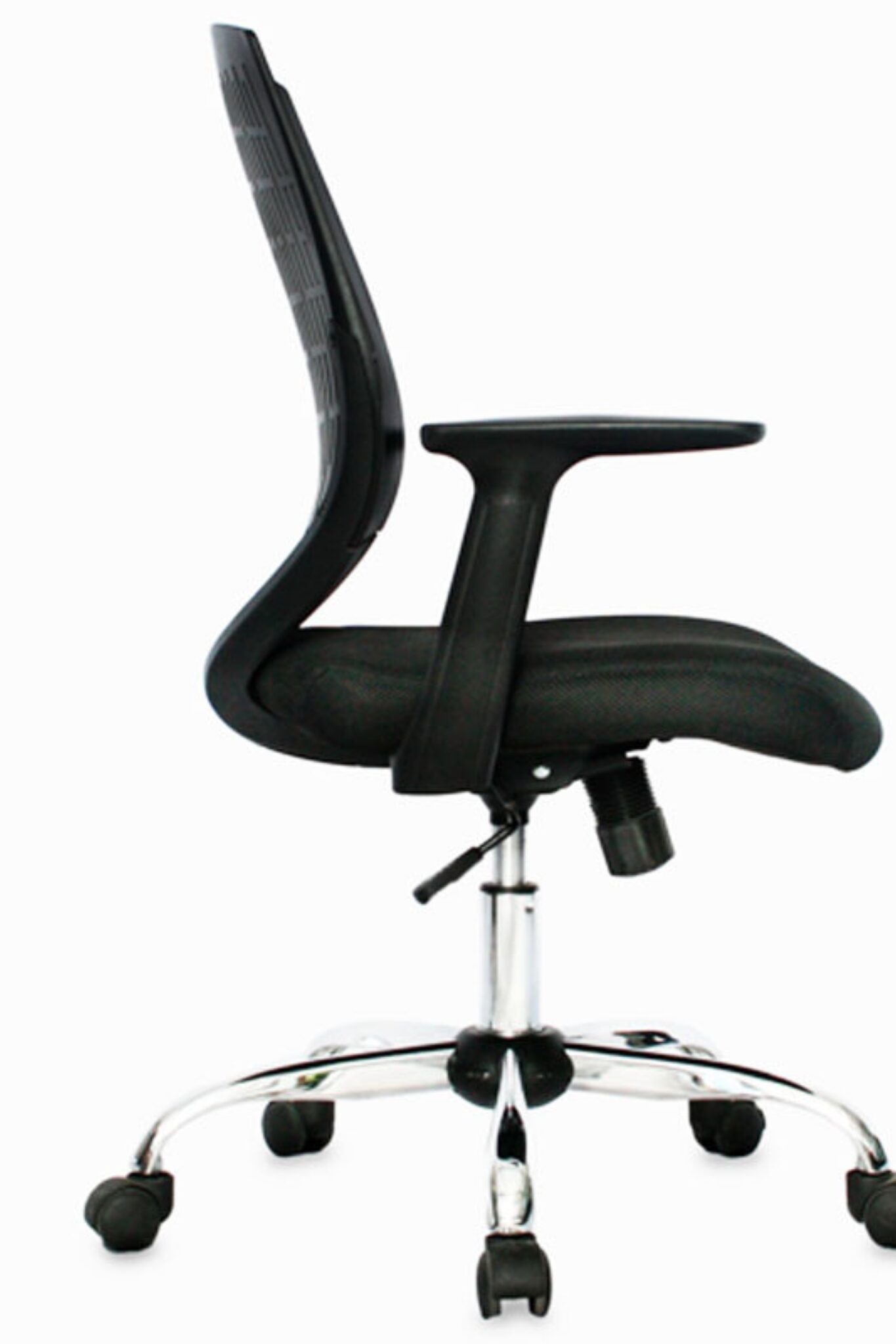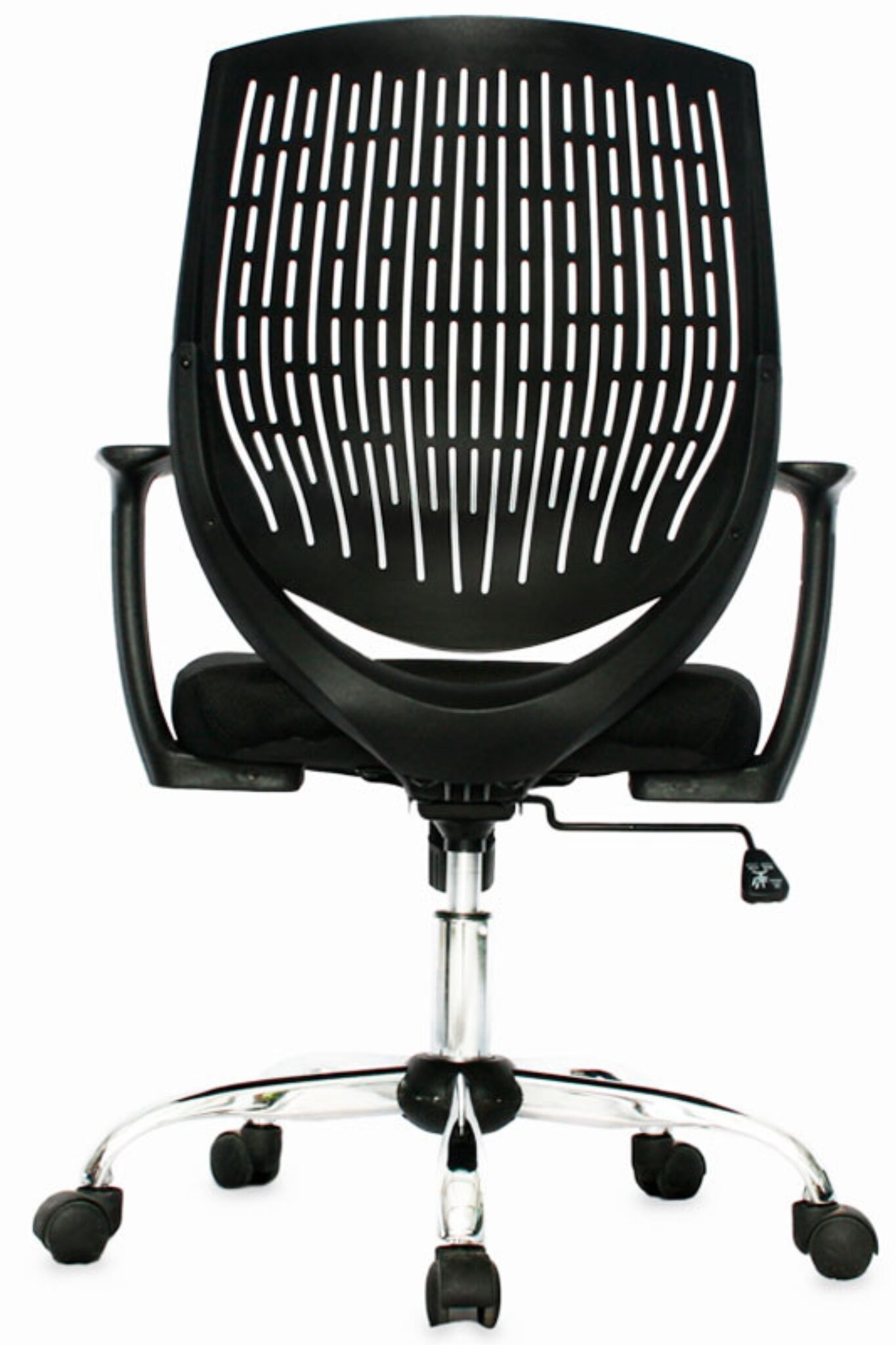 Estética Profesional: La combinación de su estructura plástica con una base en cromo crea un contraste moderno que eleva la imagen de cualquier oficina o estudio.