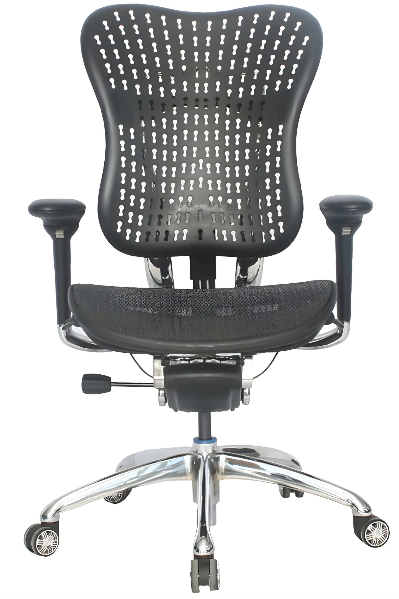 La silla presidencial TOKIO Marco Negro Línea Premium está diseñada para ofrecer confort y dinamismo en espacios de trabajo de alto nivel, gracias a su respaldo ergonómico basculante en 3 posiciones con marco en polipropileno de alto impacto graduable en altura. El apoyo lumbar graduable permite adaptar el soporte a la zona baja de la espalda, ayudando a mantener una postura saludable durante jornadas prolongadas. El conjunto giratorio incorpora un mecanismo con 3 bloqueos que brinda varias opciones de recueste según la necesidad del usuario, controladas mediante palanca de bloqueo para cada graduación. El asiento en malla traslúcida negra, deslizable y con marco en acero cromo, permite graduar la profundidad, mientras que la altura se ajusta mediante una palanca en el mecanismo que activa la columna neumática a gas cromado, complementada con una perilla de tensión para regular la inclinación de la silla. Sus brazos son graduables en altura, con rotación y cojín en poliuretano para un apoyo cómodo de los antebrazos. La base metálica en acero con terminación en cromo y ruedas 100% en nylon de doble pista para piso duro ofrecen estabilidad, un rodamiento suave y rápida respuesta a los cambios de dirección, respaldadas por una garantía de 3 años por defectos de fabricación y entrega inmediata.