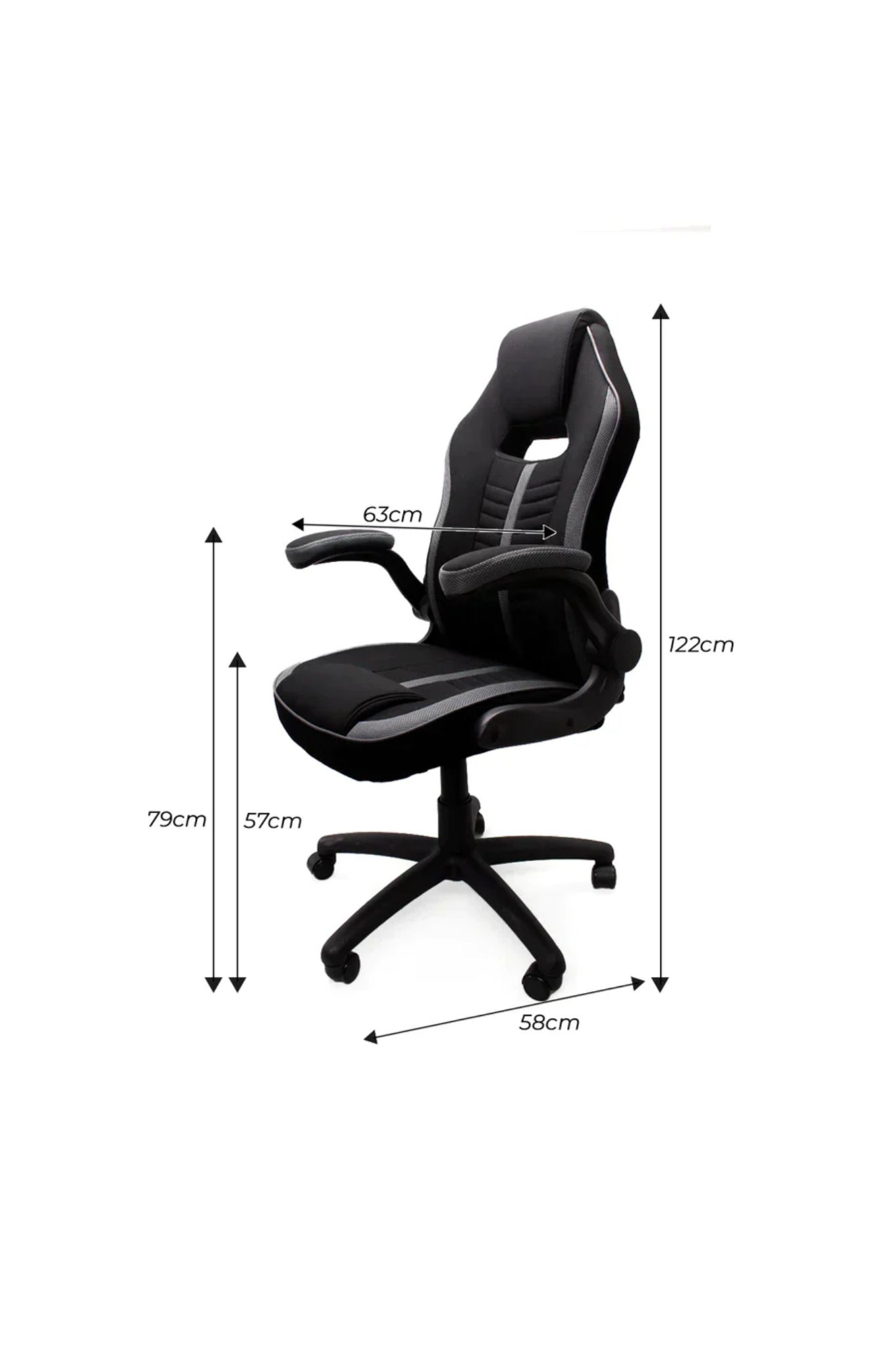 La funcionalidad es un punto clave en esta silla, ofreciendo una reclinación basculante de 90° a 130° y regulación de altura mediante un pistón neumático. Además, sus apoyabrazos acolchados y revestidos en tela cuentan con un sistema abatible a 90°, permitiendo mayor libertad de movimiento cuando se requiere. La base se apoya en una estrella de 70 cm de diámetro y soporta un peso máximo de 110 kg, respaldada por 1 año de garantía por defectos de fábrica.